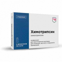 Лиофилизат - 1 фл.: химотрипсин 10 мг. 10 мг - Флаконы объемом 5 мл (10) - пачки картонные.