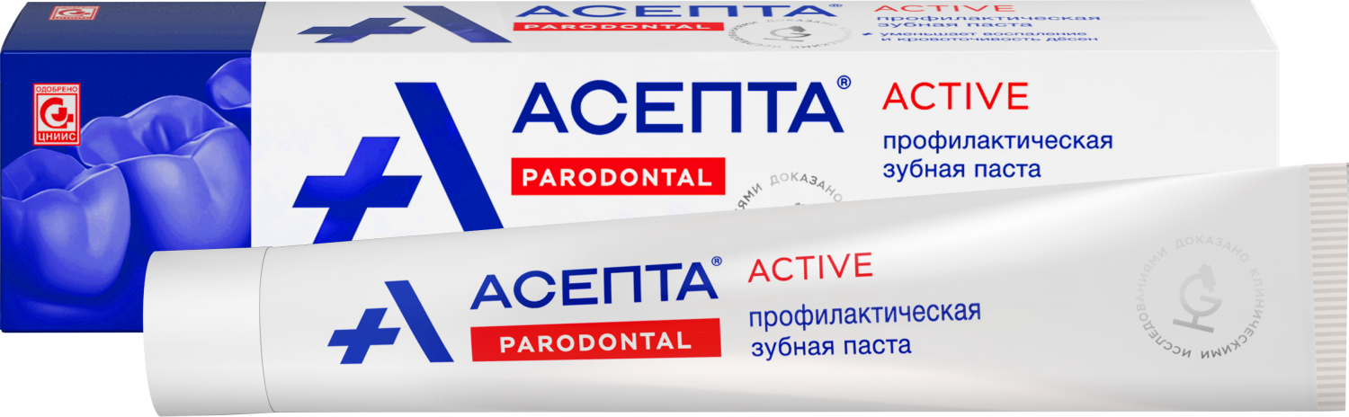 А регулярное использование профилактической зубной пасты АСЕПТА АКТИВ в течение месяца позволяет снизить кровоточивость дёсен, улучшить общее состояние полости рта и снизить воспаление.